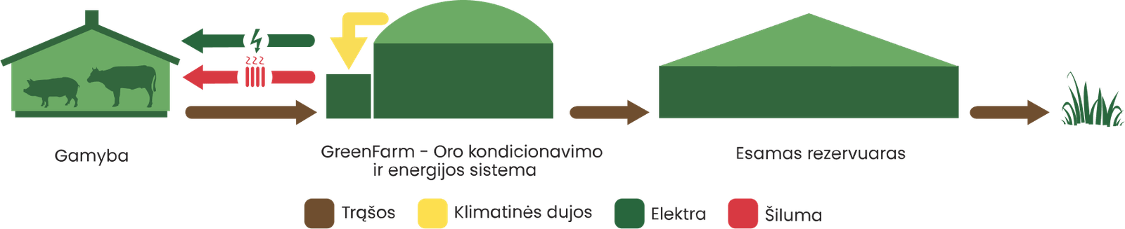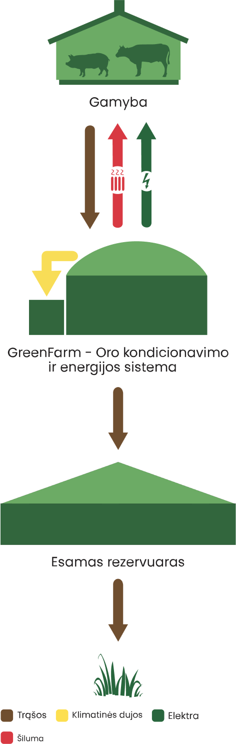 GreenFarmTM oro kondicionavimo ir energijos sistema naudoja žemės ūkio produktus kaip vertingus išteklius energijos gamybai. Energija gaminama ir naudojama vietoje, ūkyje, o gaunamas šalutinis produktas – optimizuota trąšų formulė, yra puikiai pasisavinama augalų, kuri sumažina maistinių medžiagų išplovimą į vietinę vandens aplinką.